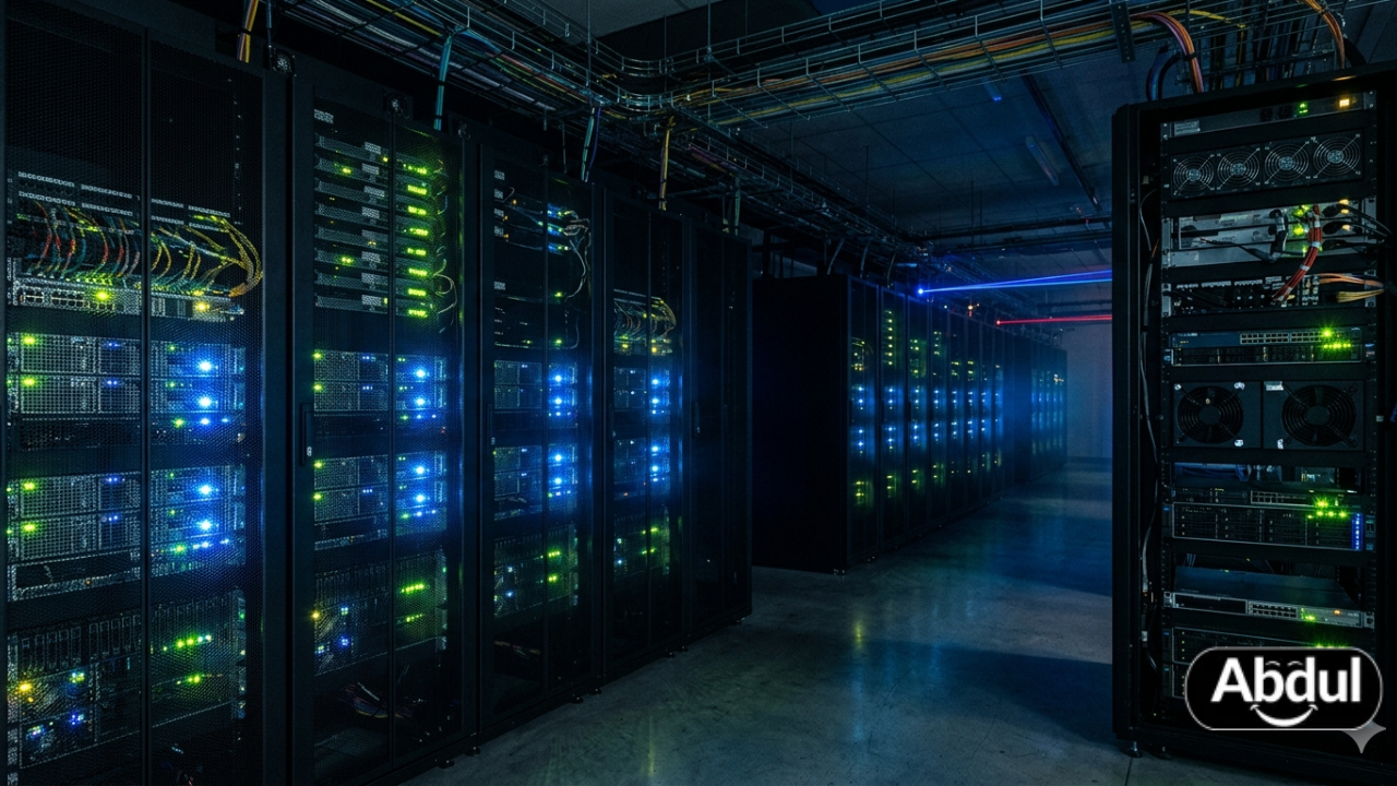 Server racks in a dark data center